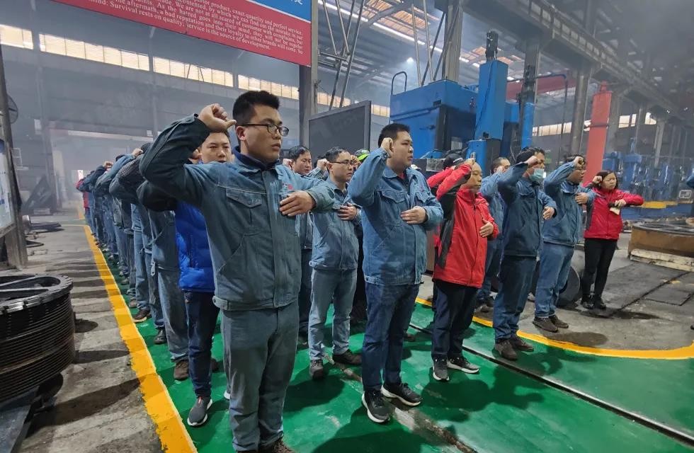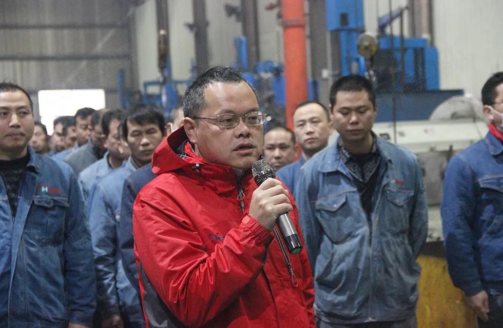 2月7日8時(shí)18分,一時(shí)鞭炮齊鳴,點(diǎn)燃在場(chǎng)所有人的斗志與激情。眾人整齊列隊(duì),莊嚴(yán)迎來農(nóng)歷新年的第一次整體晨會(huì)。副董事長(zhǎng)容北國、總經(jīng)理林均發(fā)表講話,在車間中展雄心,鼓干勁創(chuàng)未來。